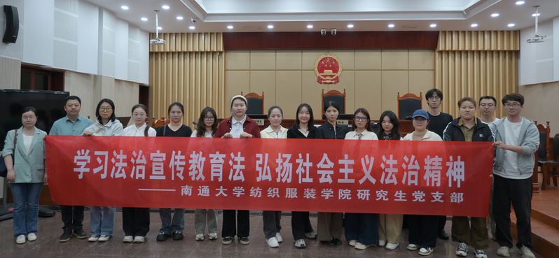 为深入学习贯彻习近平法治思想,深化法治育人实效,纺织服装学院党委创新教育形式,于10月16日组织研究生党支部与本科生党支部联合开展“法润青春 与法同行”主题实践活动,近40名师生走进南通市崇川区人民法院,通过现场观摩形式开展法治教育。