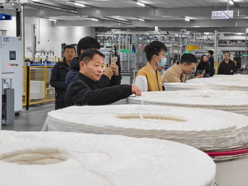 在现代化智能生产车间,中心组成员实地参观了车间从自动化纺纱生产线到数字化管理系统,从智能物流配送到质量在线监测等新一代信息技术与传统纺织制造的深度融合。企业负责人详细介绍了通过科技创新实现质量提升、效率变革、绿色发展的具体实践,为中心组成员理解“以科技创新引领现代化产业体系建设”提供了鲜活案例。