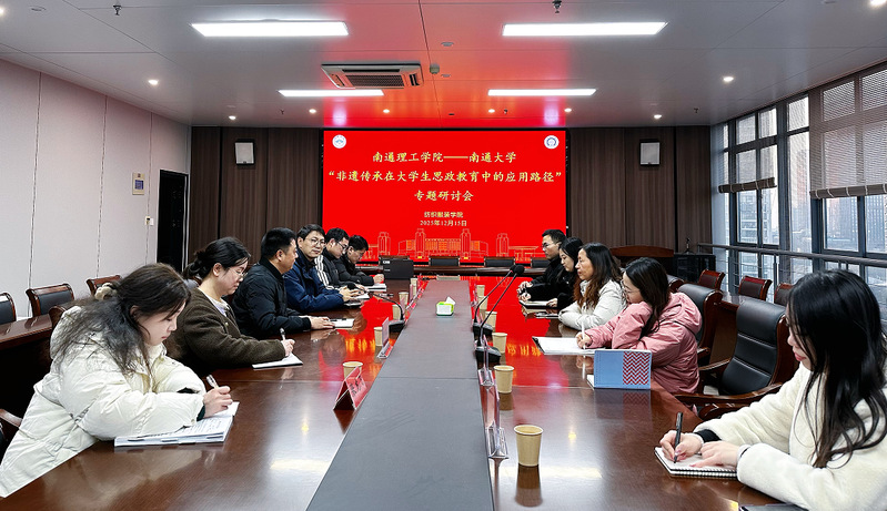 为深化非遗传承与大学生思政教育的融合实践,探索协同育人新路径,12月15日下午,南通理工学院传媒与设计学院副院长、党总支副书记沈九美,院分团委书记胡玲玲,星绘传薪辅导员工作室主持人崔舜婷等一行6人前往我院开展调研交流。南通大学纺织服装学院党委副书记、副院长汤小松,蓝印花布研究所副所长倪沈键,院学工办主任程诗涵,院学工办副主任孙宜澎及各年级辅导员参与交流。