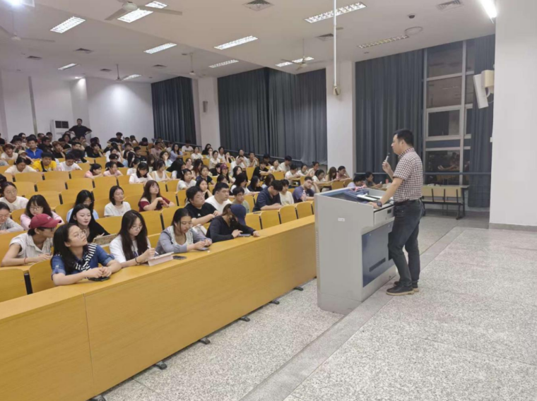 汤小松指出,当前就业形势总体稳定但竞争激烈,通过考研追求更高的学历层次,能提升专业素养,拓宽职业路径,他鼓励同学们积极考研,提升自己的综合素质。汤小松从发展沿革、学科实力、科研平台、招生专业及研究领域、导师队伍、培养特色、国际交流及校企合作等方面系统介绍了学院总体情况和硕士点特色,清晰展现了学科优势和育人实力,并鼓励同学们积极报考本校本院。汤小松表示,学院已于暑期对自习室进行改造,即将开放使用,并将一如既往为大家提供良好的学习氛围,期待新一届学子再创佳绩。