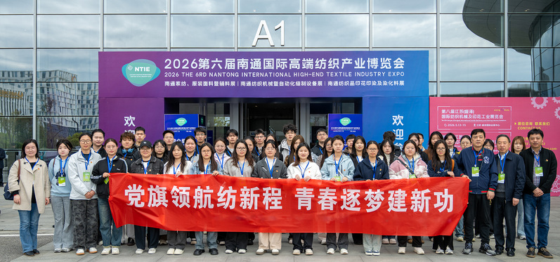 为推动党建引领与专业实践深度融合,促进思政教育、专业研习与产业实践同向发力,引导广大青年学子在实地调研中增长学识、拓宽视野、勇担使命,4月9日上午,纺织服装学院组织学生党员走进2026第六届南通国际高端纺织产业博览会,开展“党旗领航纺新程 青春逐梦建新功”主题党日活动。